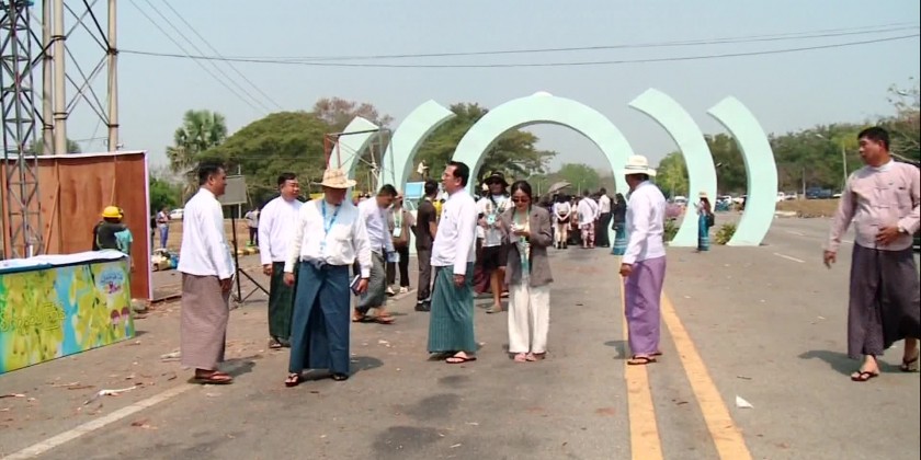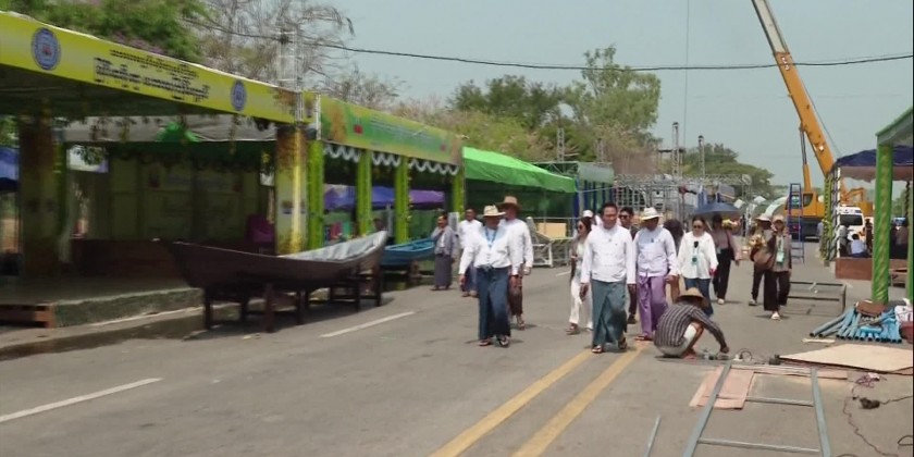 Chairman of Committee for Organizing Nay Pyi Taw Walking Thingyan Union Minister for Information U Maung Maung Ohn together with Deputy Minister U Ye Tint, permanent secretary U Myo Myint Maung and officials, in the morning on 11th April inspected the rehearsal for opening ceremony of Nay Pyi Taw Thingyan Splash Walk to be organized along the road between Nay Pyi Taw Mayor Thingyan pavilion situated on Pyinmana-Taungnyo road to Nay Pyi Taw City Development Committee guesthouse and preparations as per the zones.