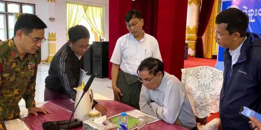 Bago Region Chief Minister U Myo Swe Win made a ground inspection tour in Bago Township for the mitigation of flood, rapid receding of flood and prevention of flood disaster in timely manner and coordinated requirements.