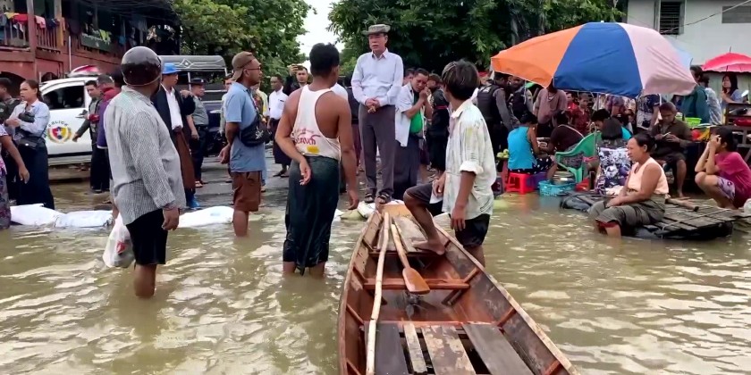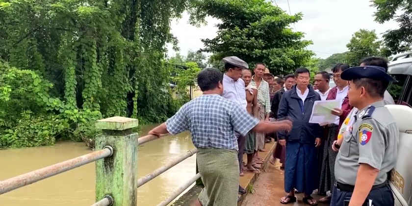 After that, Chief Minister and party inspected over flooding on the Kyauk-Kyi-Su embankment and Nyaung-Waing embankment and gave necessary instruction to the Tatmadawmen, members of Myanmar Police Force and Fire Brigade.
