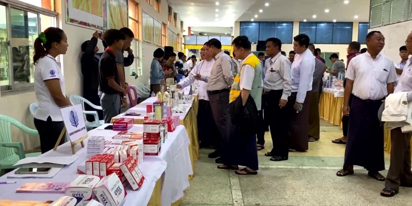 The Chief Minister also inspected the direct medicinal sale by the medical companies on the upper floor of Thiri-Ottha market building of Bago Township.