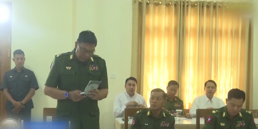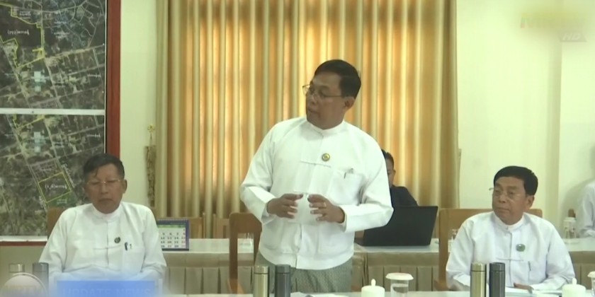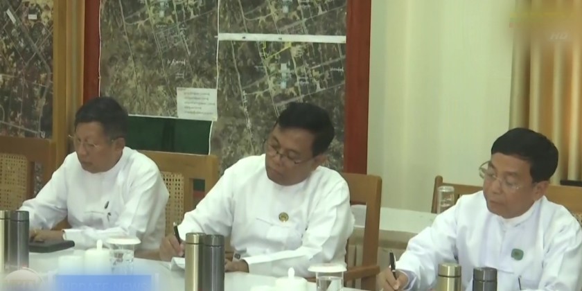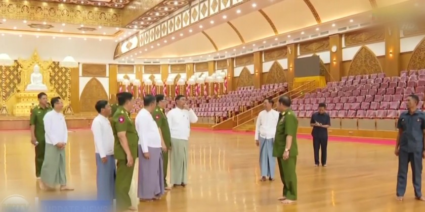 Initially, the SAC Chairman received the clarification of the Chairman of the pagoda board of trustee U Thant Swe, Union Minister for Energy, U Ko Ko Lwin, Director of the Directorate of Military Engineering, Ma-j Gen. Zaw Naing Oo, Union Minister for Construction, U Myo Thant, and other officials, reviewing the details and measurements of the Maravijaya Buddha Image and the Throne.