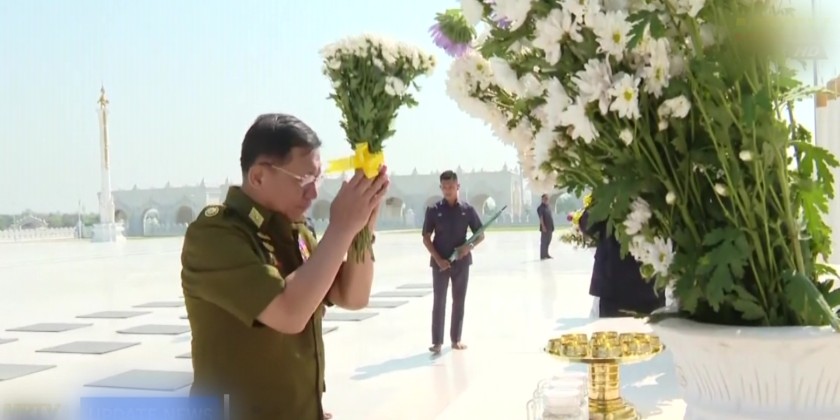 Chairman of the State Administration Council, Commander-in-Chief of Defense Services, Senior General Min Aung Hlaing, accompanied by the members visited the Maravijaya Buddha Image which is the world tallest sitting marble Buddha Image situated within the Buddha Park in Dekkhinathiri Township, Nay Pyi Taw Union Territory and inspected the situation of damages of the Buddha Image and the religious buildings in the park on the 1st April.