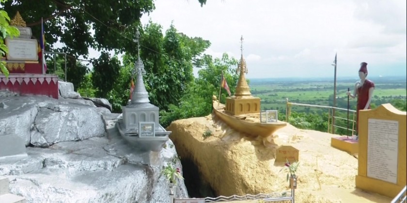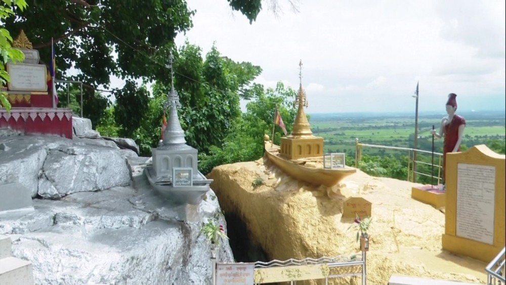 Next, the Union Minister and officials visited the Sutaungpyae Lokamarazein Pagoda. A member of the the Pagoda Board of Trustees presented the progress of the renovation, and the Union Minister provided guidance on the necessary requirements.