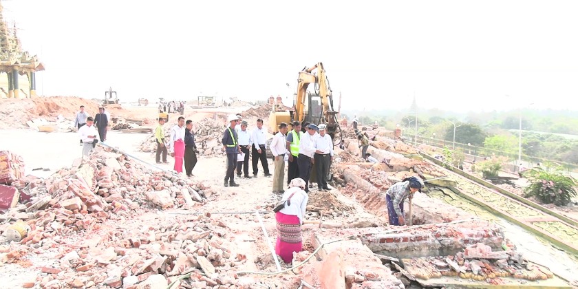 He inspected the renovation and repair works on the pagoda's platform, terraces, and precincts that were damaged by the earthquake. He also examined the progress of cement grouting and soil stabilization activities, as well as the excavation and preparation works on the original platform flooring. Based on explanations provided by responsible officials, the Nay Pyi Taw Council Chairman instructed them to expedite the completion of the works, ensure long-term durability in accordance with prescribed standards, and systematically manage the technical renovation tasks.