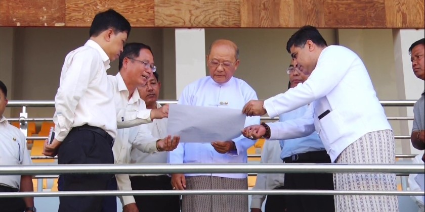 First, the Union Minister and officials inspected the completion status of the renovation of the facilities inside the Shwe Kyar Pin Sports Ground which is the main sports ground of the Nay Pyi Taw Council Union Territory, which was damaged by the Mandalay earthquake. At the briefing hall, the responsible officials from the relevant company gave a detailed report on the ongoing work.