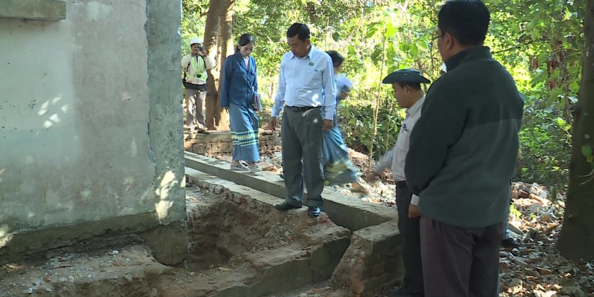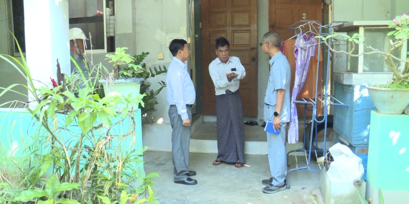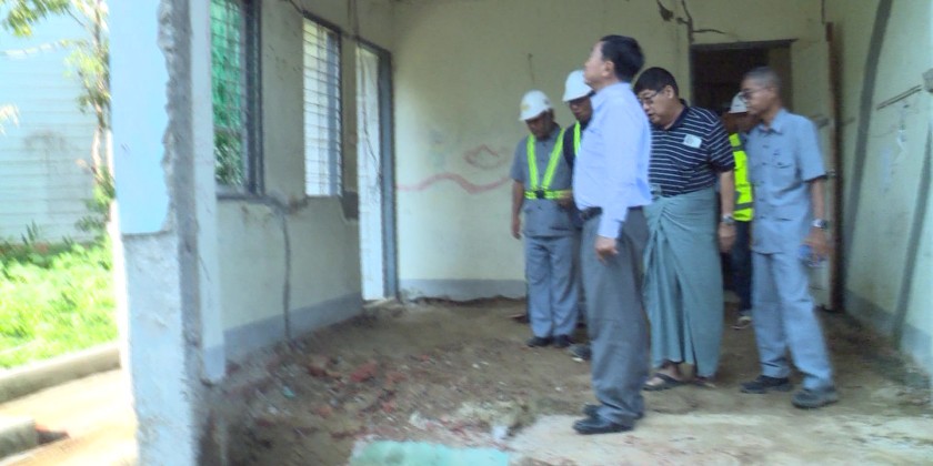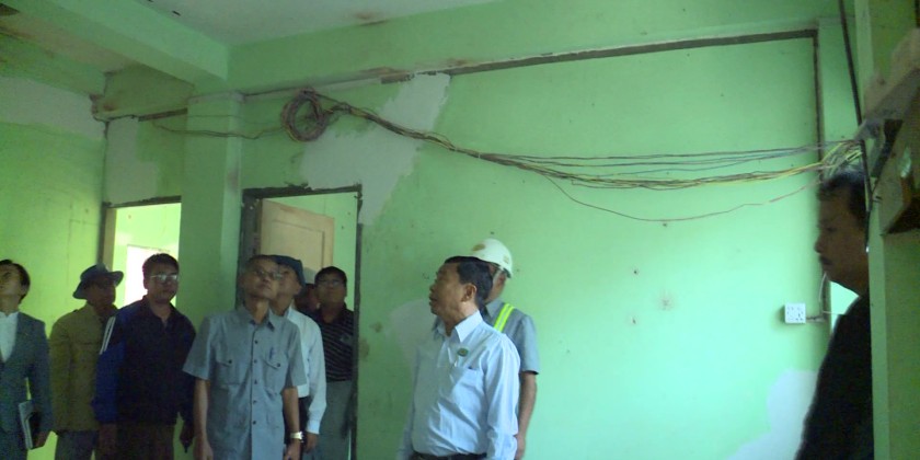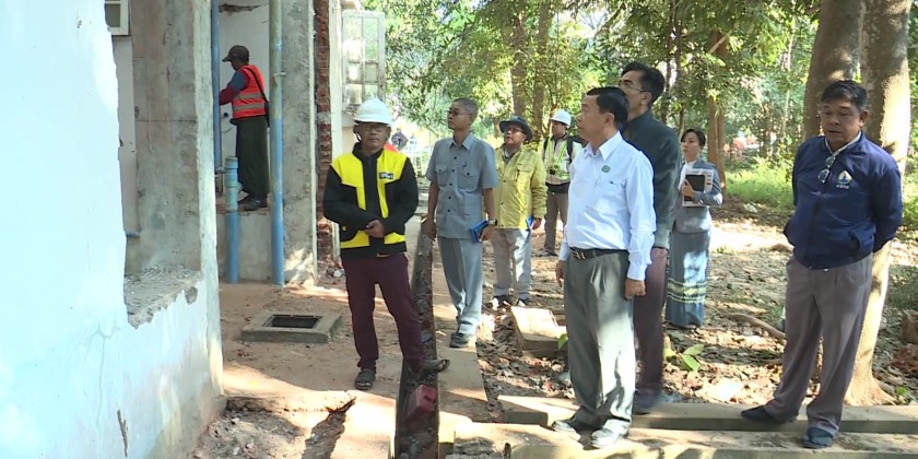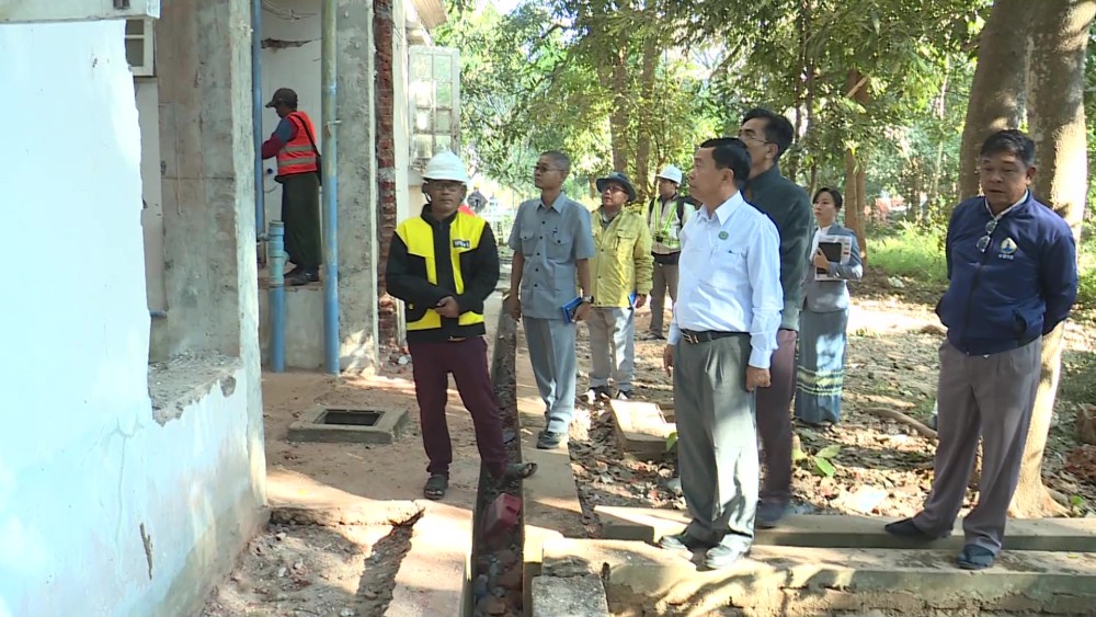 Nay Pyi Taw Council Chairman U Than Tun Oo, accompanied by department officials, inspected the status of repairs to staff housing damaged by the earthquake in Zabuthiri Township on January 2.