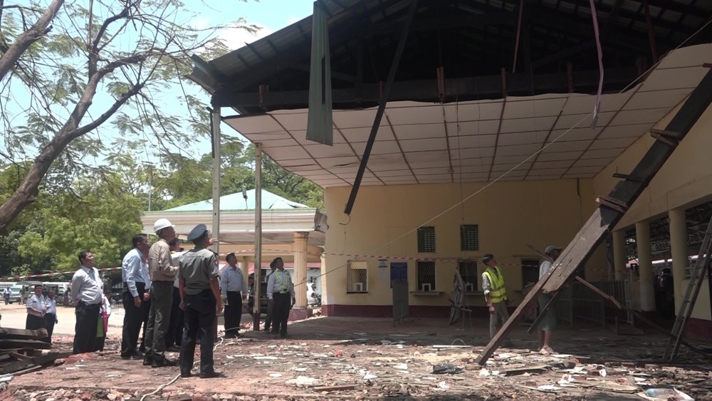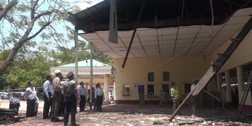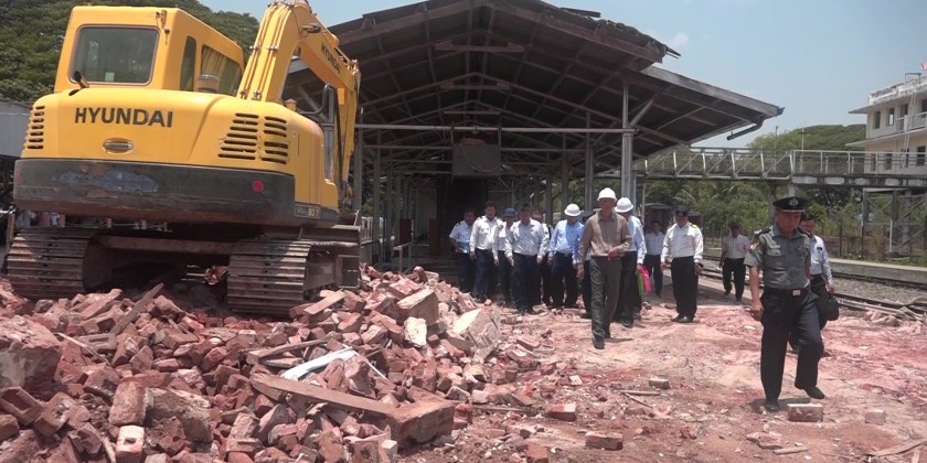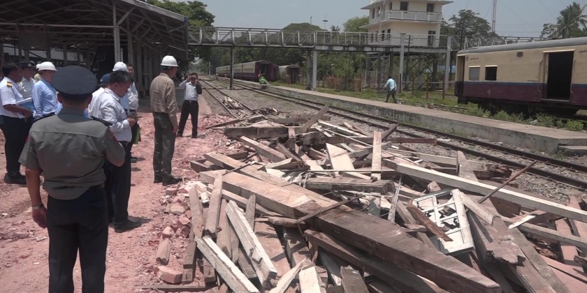 The Union Minister and officials, first arrived at Pyinmana Railway Station in Pyinmana Township and inspected undergoing necessary renovation of the train ticketing building collapsed due to the earthquake. They also examined the damage to maintenance buildings at the railway yard, the condition of the repaired electricity substation within the yard, the post office inside the station, and the need to repair and restore the pedestrian overpass. The Union Minister instructed that ancient terracotta roof tiles be systematically preserved and that salvaged equipment be secured to prevent from waste. Additionally, the Minister stressed the urgency of repairing the control systems for the damaged railway switches and crossings. He instructed that skilled personnel, retired staff, and experts currently working with the department or in related fields be gathered and consulted in order to develop and implement the best possible solutions effectively.