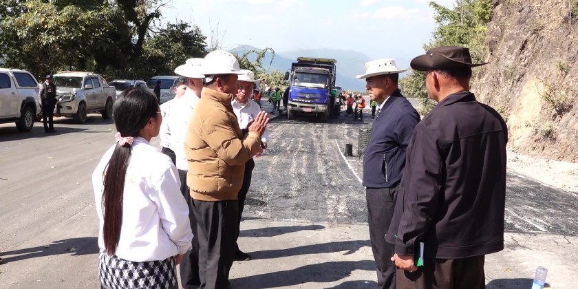 Shan State Chief Minister and responsible officials conducted a field inspection of the ongoing repair works on the Meiktila-Taunggyi-Kengtung-Tachileik road on January 5. These works are being implemented under the BOT system by the Mountainous Region Road Construction Company, under the supervision of the Department of Roads, Ministry of Construction, in the Kalaw District of Shan State (South).