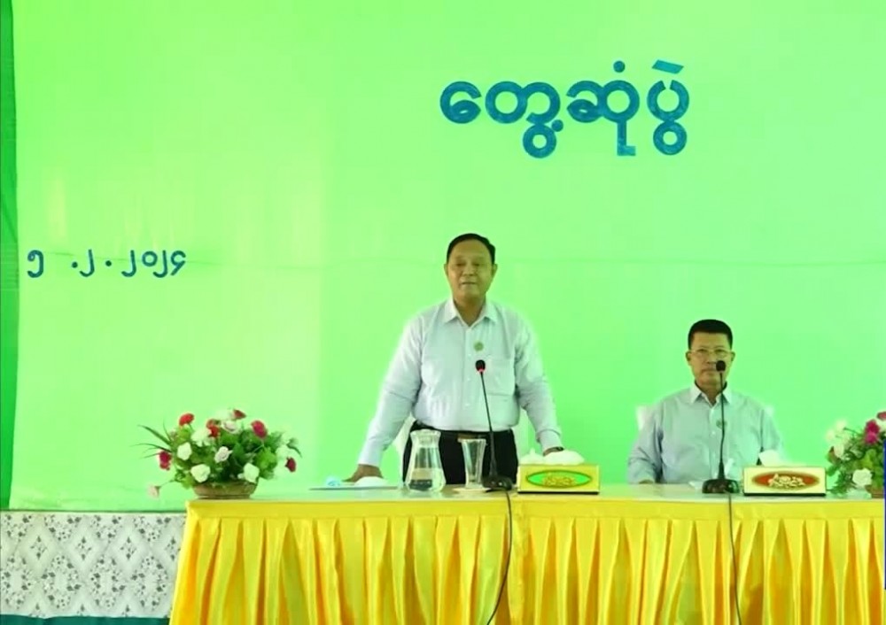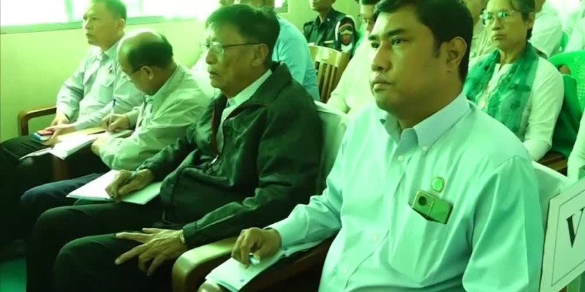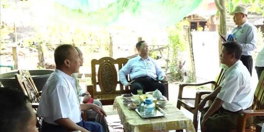 First, the Union Minister, Chief Minister and party met with the Village Administrators, Village elders and local residents from 51 villages of 12 Village-tracts, work committee members of Village emerald green project from 14 villages, members of 8 cooperatives societies and representatives from the Department of Education and the officials concerned clarified the implementation of related sectors.