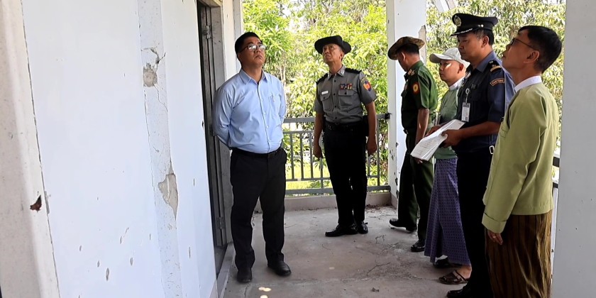 Later, the Chief Minister and officials visited the State Customs Department office. They assessed the situation to ensure that both the state and township customs offices can reopen and operate smoothly. They also inspected the state office and a two-story, four-unit staff housing building to evaluate the necessary repairs for the convenience of department staff. Instructions were given to promptly implement the required renovation work, and coordination was carried out to address the identified needs.