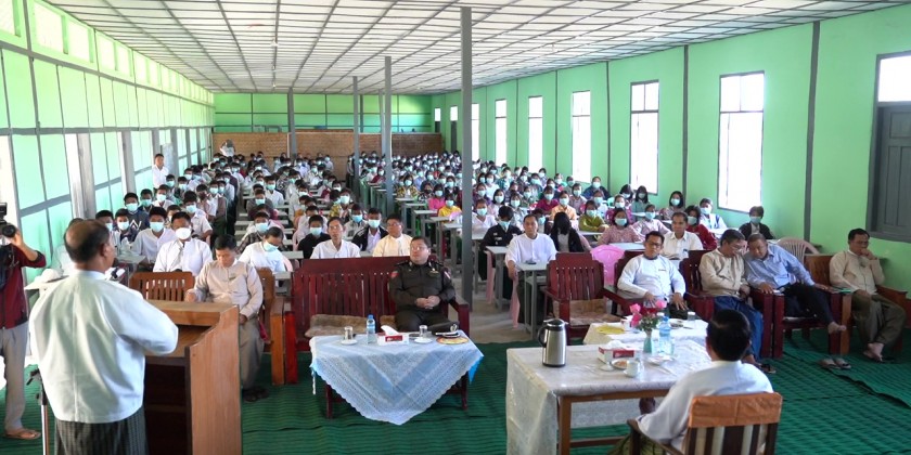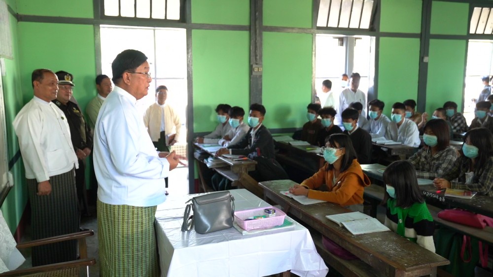 The Magwe Region Chief Minister U Tint Lwin together with the region ministers and region/district/township departmental officials in the morning on January 10 inspected the studying of the students in the schools in Minbu (Saku) Township and the land plots where the Township Sasana Beikman and Livestock Breeding College.