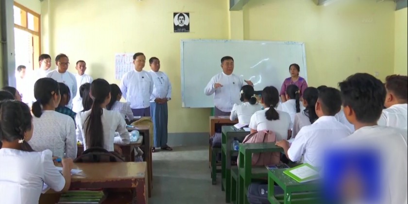 Union Minister for Education, Dr. Nyunt Pe, along with deputy ministers and relevant officials, visited basic education schools in the Nay Pyi Taw Council Area, on Tuesday, to inspect preparations being made ahead of the June school reopening for the upcoming academic year, as well as to observe and encourage students who are peacefully studying intensively for the 2025 matriculation examination.