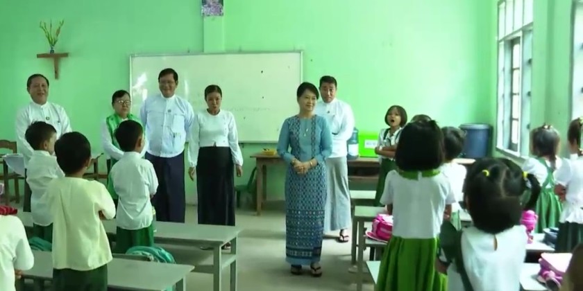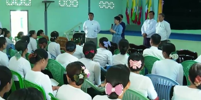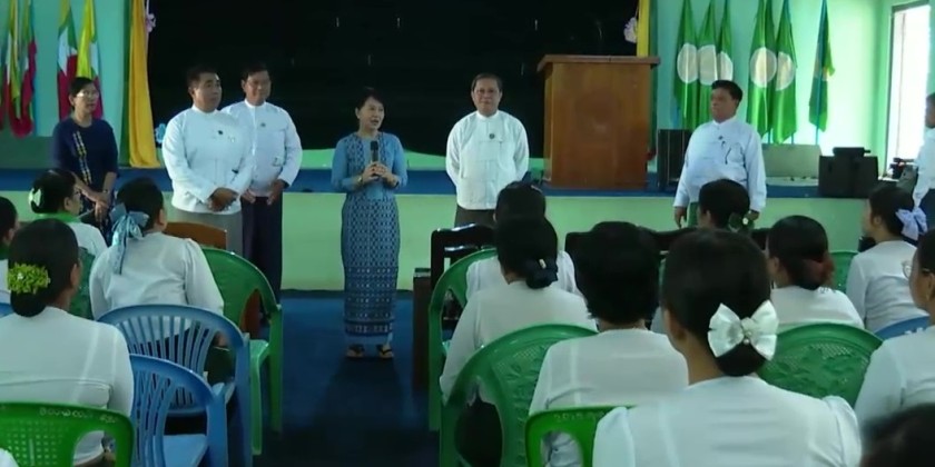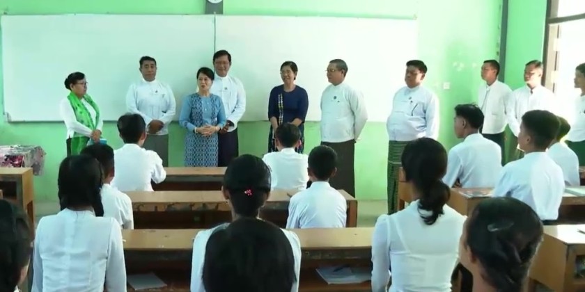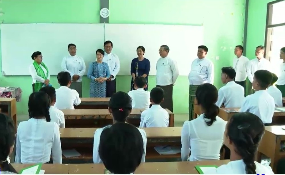 The Union Minister then proceeded to Inntha Basic Education High School (Branch), where she visited classrooms, observed the students’ learning activities, and delivered words of encouragement.