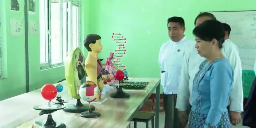 Union Minister for Education Dr. Chaw Chaw Sein, together with the responsible officials, visited Thekawgyi Basic Education High School in Lewe Township on the morning of August 19. There, she observed the peaceful learning environment of the students and offered words of encouragement.