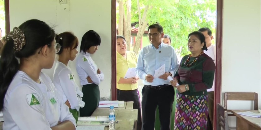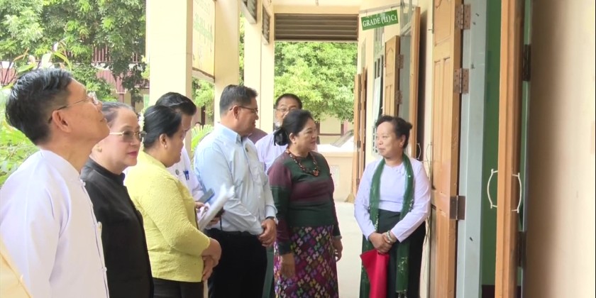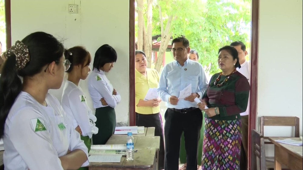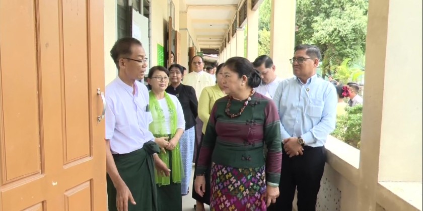 Member of the State Administration Council Daw Dwe Bu, on May 21, visited Myitkyina, Kachin State, and inspected local high schools where Grade 12 students are undergoing subject-wise intensive preparation sessions to re-sit the matriculation examination, and inspected the ongoing training.