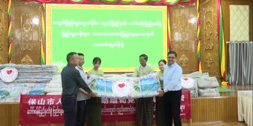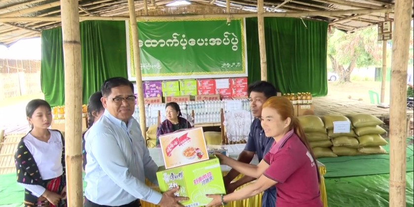 Later, she attended a handover ceremony at the Kachin State Government Office’s Maykha Hall, where 100 sets of temporary shelters (tent houses) and 312 tarpaulins were donated by the People’s Government of Baoshan Prefecture, Yunnan Province, People’s Republic of China.