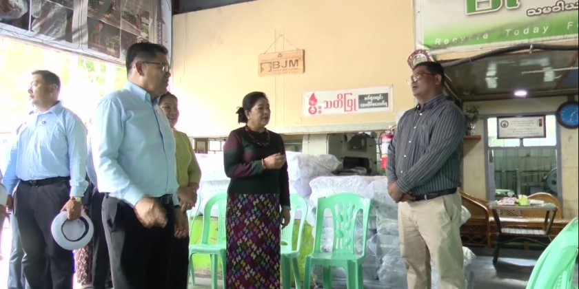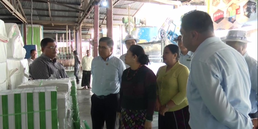 The donation was received by Kachin State Chief Minister U Khat Htein Nan, who also presented a certificate of honor in return. In the afternoon, Daw Dwe Bu, together with the State Chief Minister, visited the "Phyo Wai Wai" Paper and Book Production Industry in the Myitkyina Industrial Zone, where they inspected the production of school notebooks, exercise books, tissue paper, and cardboard.