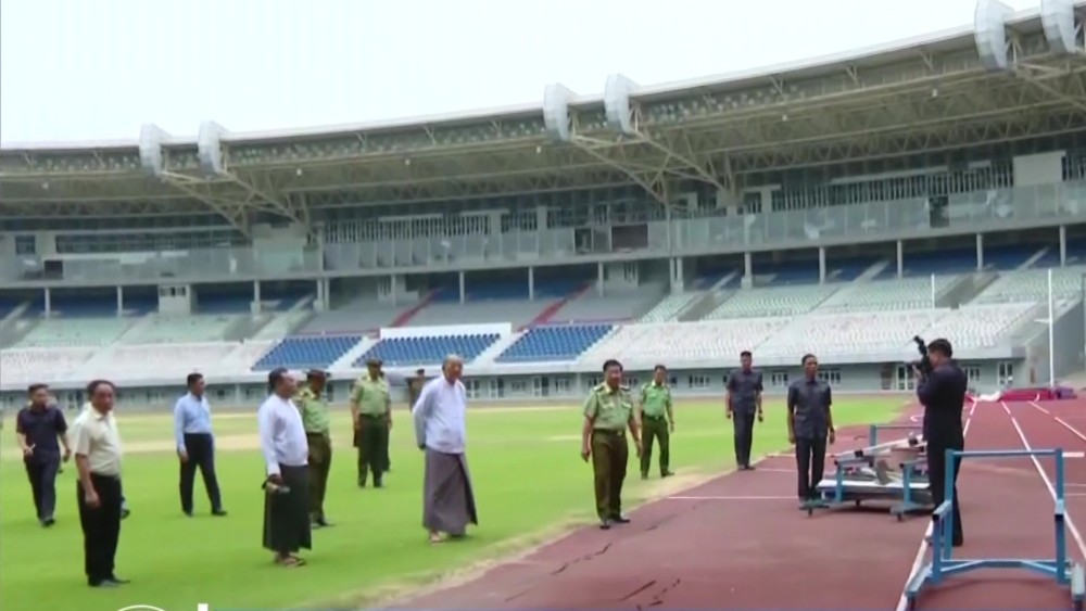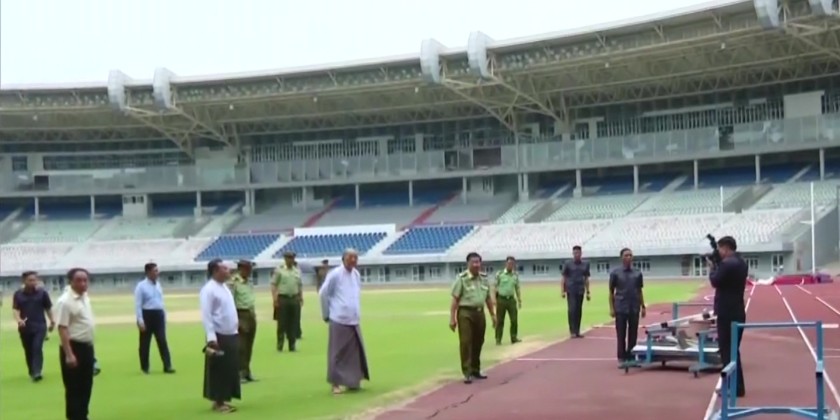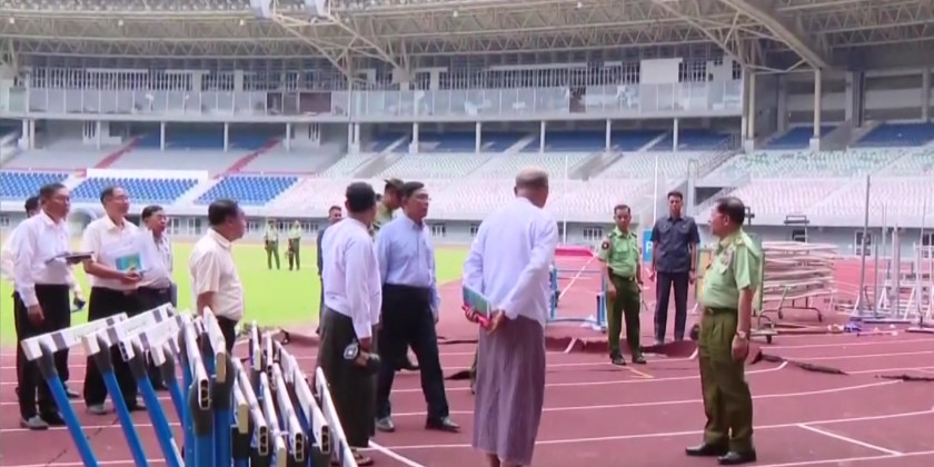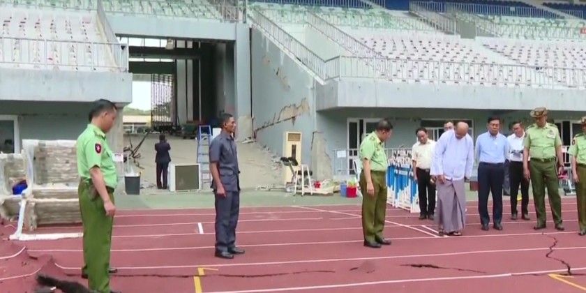 They inspected the damages caused by the earthquake, which affected the football field, the running track, the grandstands, and the entrances. Union Minister for Sports and Youth Affairs, Jeng Phang Naw Taung, and other responsible officials provided an explanation of the damages. Following the briefing, the Prime Minister emphasized the importance of systematically inspecting and repairing the sports buildings and fields that were damaged by the earthquake.