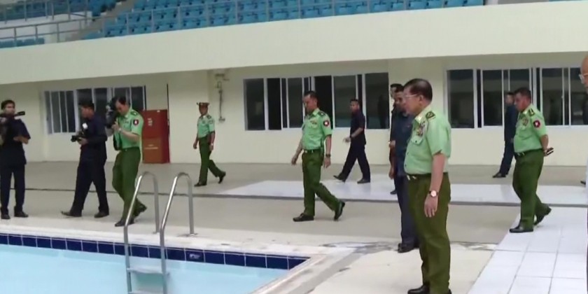 The complex, which was completed and opened in 2013, sustained damages to its sports buildings due to the recent earthquake. The officials inspected the damages and assessed the situation. First, the Prime Minister and members arrived at the football field of the Wunna Theiddhi Sports Complex, which was completed on January 31, 2013.