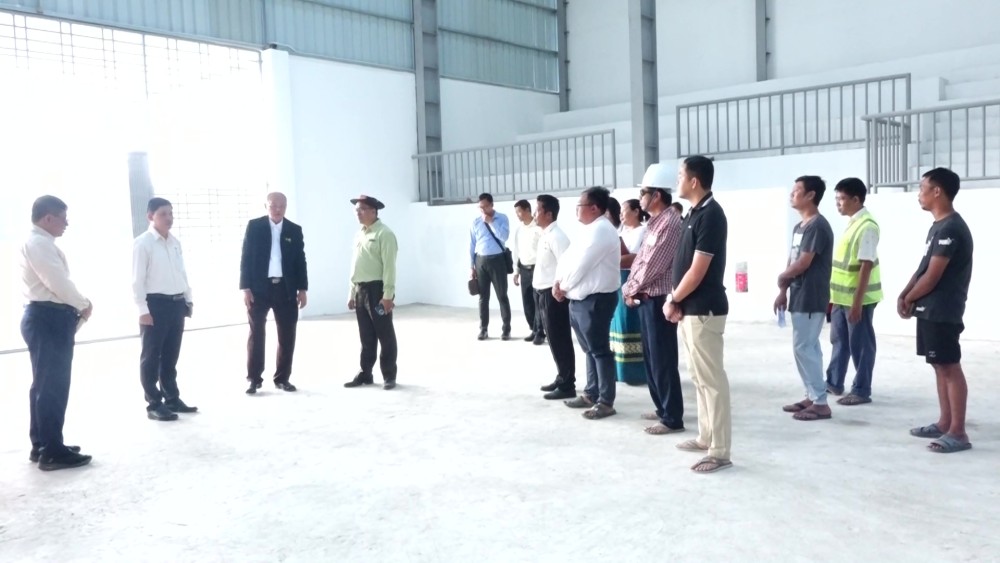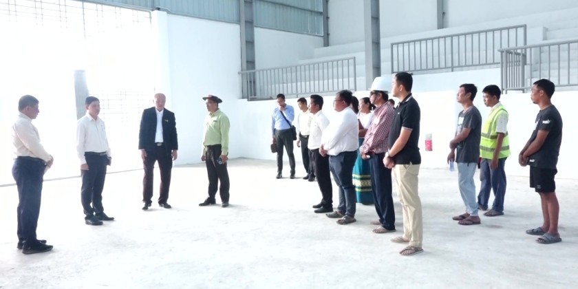 First, the Union Minister arrived at Nawarat Sports Ground in Shwepyitha Township and inspected the construction status of the remaining 50 percent of works for the upgraded indoor sports hall (Category A), of which 90 percent has been completed, and provided necessary guidance and instructions.