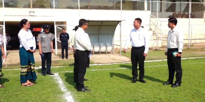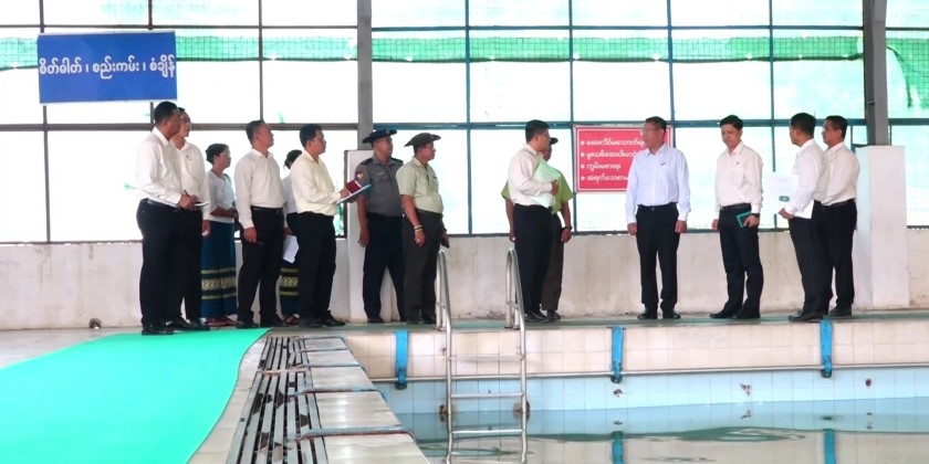After a group photo was taken, the ceremony was concluded. Subsequently, the Union Minister and his team inspected the Padumma Sports Ground in Sanchaung Township, the football field, grandstand, water storage tank, swimming pool, competition hall (A) of the Thihadipa Sports Hall and Futsal Sports Ground at Thihadipa Sports Ground in Thanlyin District, as well as the Padetha Sports Hall and football field at Padetha Sports Ground in South Okkalapa Township.