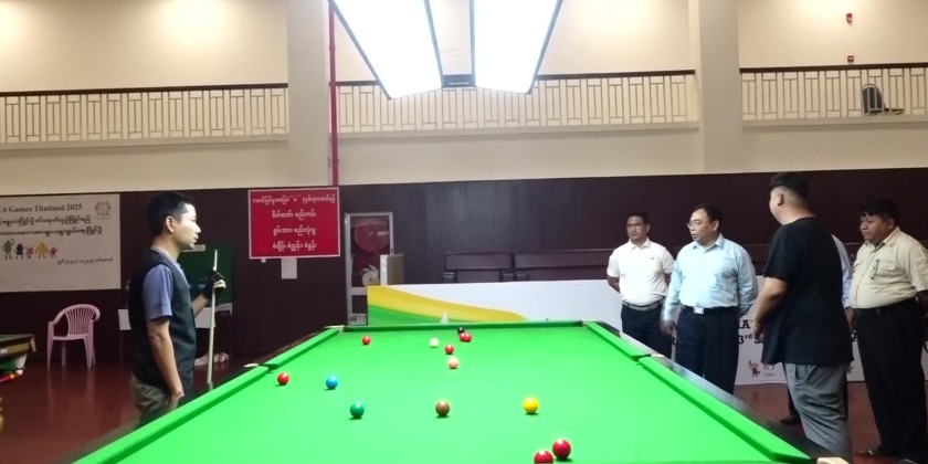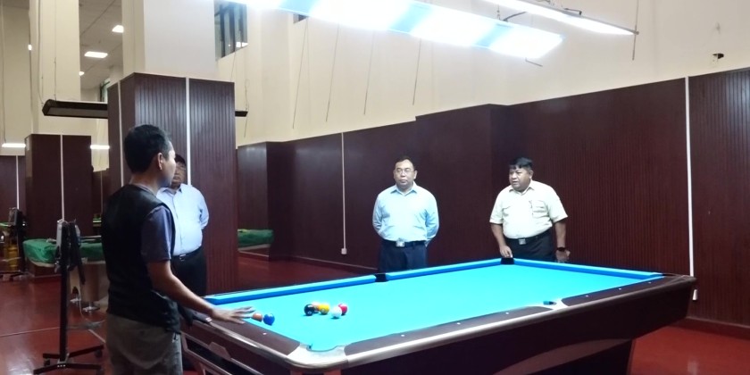 Deputy Minister for Sports and Youth Affairs U Htein Lin accompanied by officials on Sunday visited the training hall of Myanmar Billiard and Snooker Federation, at Thuwana Indoor Stadium(1) in Yangon and instructed to ensure clean space and adequate lighting.
