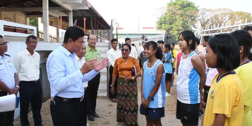 After the inspection, the Union Minister observed the Track & Field practice, emphasized providing sports equipment for public use and stressed facility maintenance for long-term sustainability. Then, the Union Minister frankly met with the staff of the Myeik District Sports and Physical Education Department.