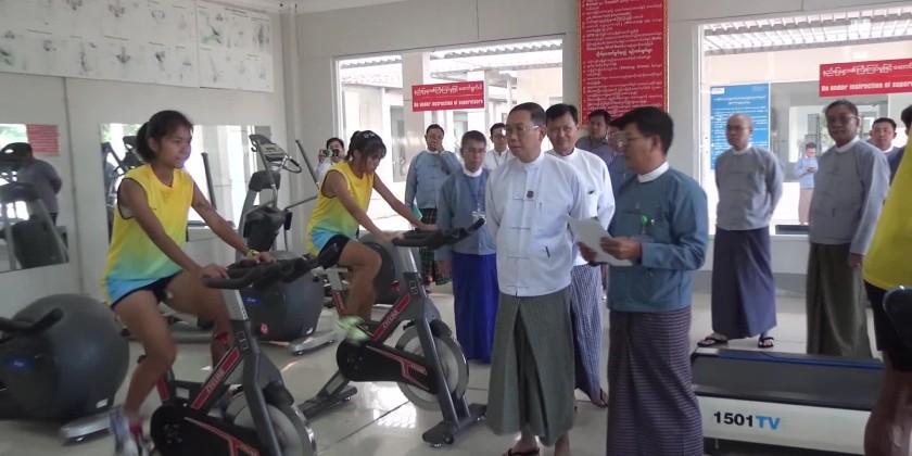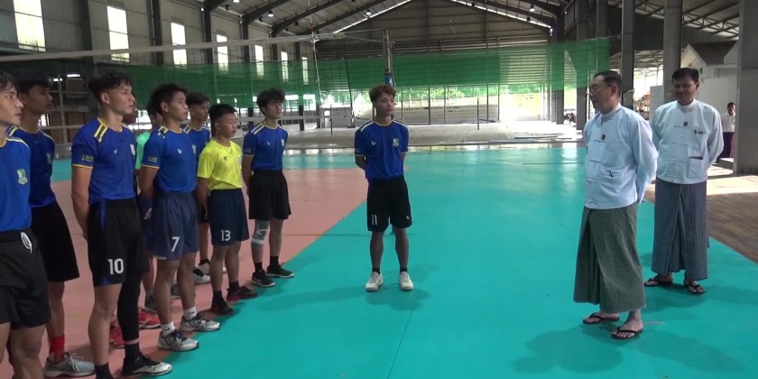 The Union Minister for Natural Resources and Environmental Conservation, U Khin Maung Yi, accompanied by relevant officials, visited the Indoor Stadium in Lewe Township on Tuesday, observed the training sessions of the ministry's men’s Sepak Takraw team, preparing for participation in the 2024 Fifth National Sports Festival, as well as the men’s volleyball team and the men’s and women’s athletics teams practicing at the Wunna Theiddhi Sports Stadium.