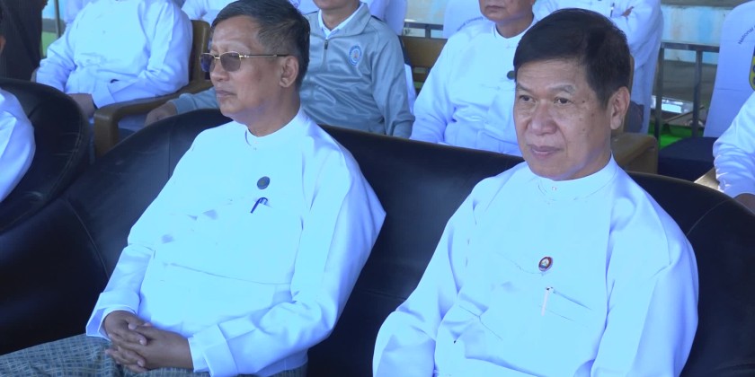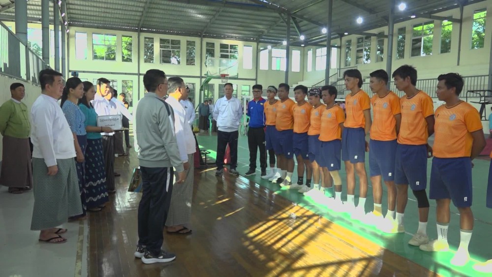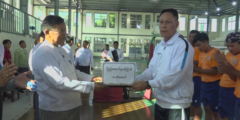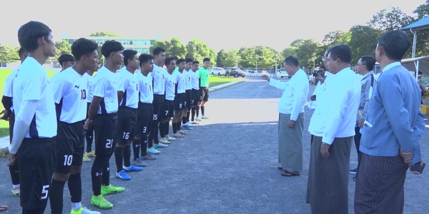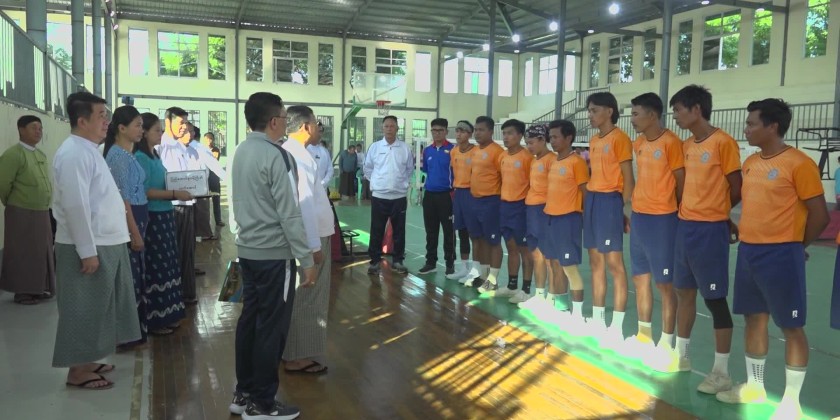 The Union Minister for Religious Affairs and Culture U Tin Oo Lwin accompanied by Mandalay Region Chief Minister U Myo Aung and Region Minister, permanent secretary and officials visited Shwe Mann Taung Youth Sports Training Gound (Mandalay) in Aung Myay Tharsan Township on 25th November, met with the men Sepak Takrarw team and Football team who are under camping training to compete in 5th National Sports Festival representing the Ministry, gave words of encouragement, provided assistant materials and viewed the friendly match.