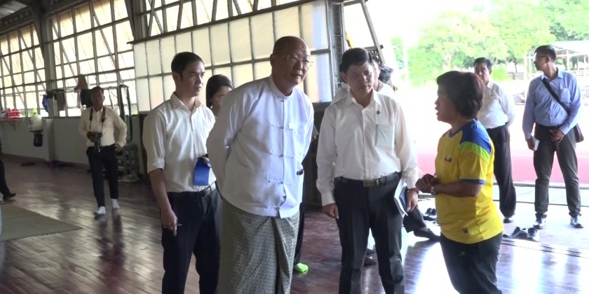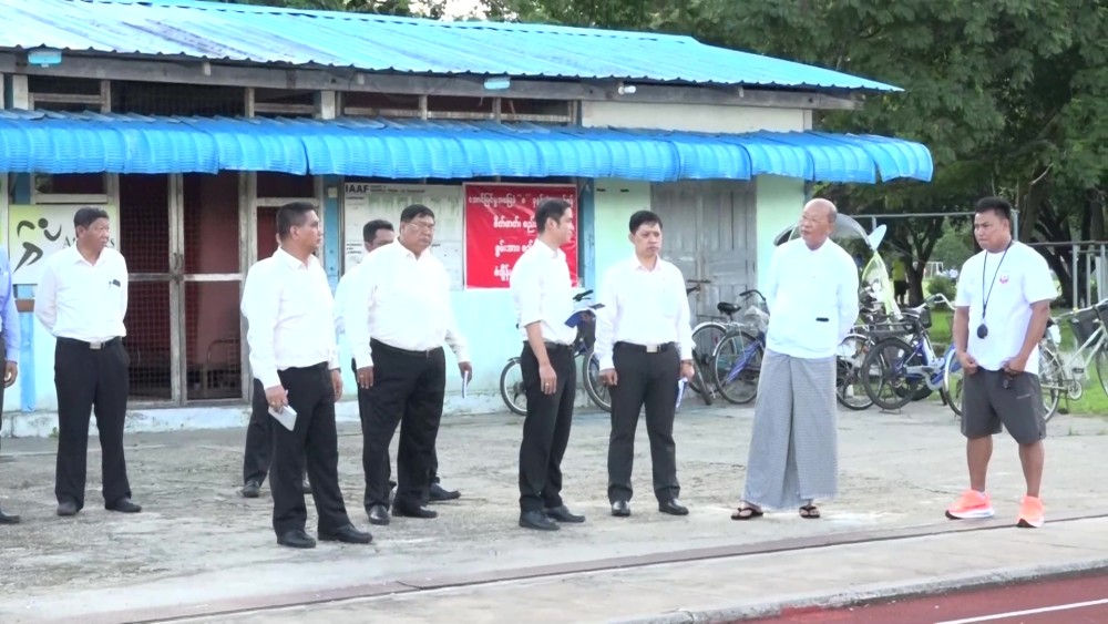 Union Minister for Sports and Youth Affairs and Chairman of Myanmar Olympic Committee, Jeng Phang Naw Taung, accompanied by officials, visited the Kyaikkasan Ground (Yangon) in the evening on June 9.