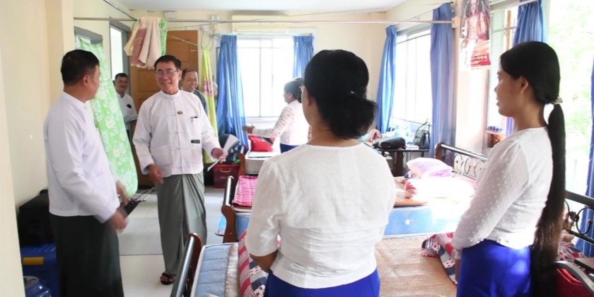 In the afternoon, the Union Minister and officials also visited Gold Camp, the sports training center in Nay Pyi Taw, where additional staff families from the Ministry of Ethnic Affairs were temporarily relocated. They met with the staff, offered words of encouragement, and coordinated to address any outstanding needs and support requirements.