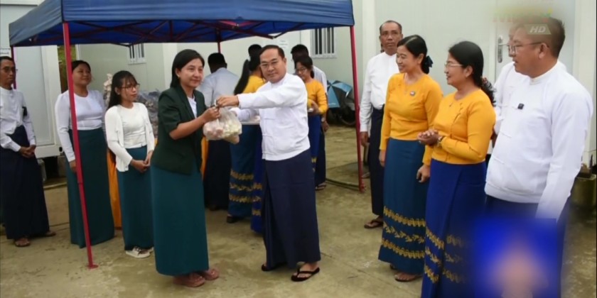 He also emphasized the importance of assigning responsibilities step-by-step for security and administrative matters. He then inspected the living and dining conditions of the staff and provided necessary support. Afterward, the Deputy Prime Minister and Union Minister, along with the Deputy Ministers and heads of departments, provided kitchen crops and eggs to the staff residing in the Modular Houses.