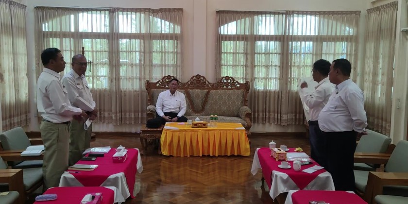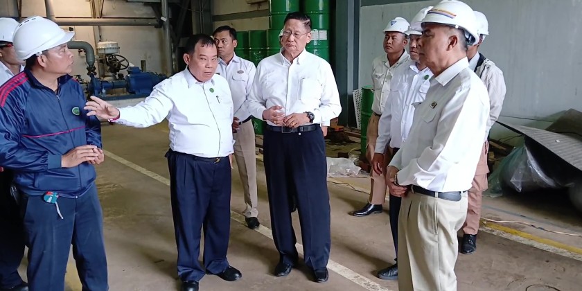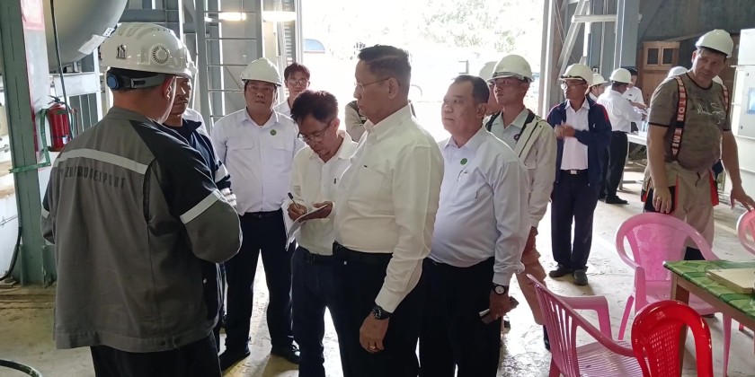 On the afternoon of June 14, Deputy Minister for Industry U Yin Maung Nyunt visited Steel Mill No. (2) Pangpet, located in Taunggyi, Shan State. At the factory’s guest hall, he was briefed by the factory manager, responsible personnel, the full-time senior engineering advisor for the construction project, and the project’s lead engineers.