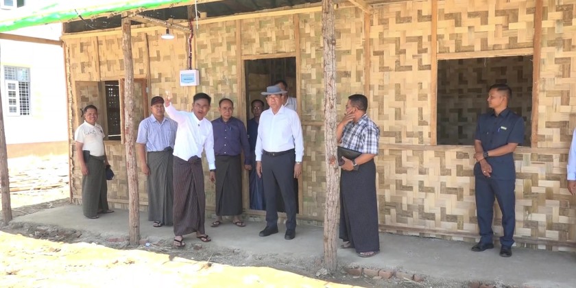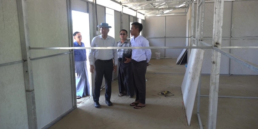 Union Minister for Home Affairs Lt-Gen Tun Tun Naung, accompanied by Chief of the Myanmar Police Force, Police Lt-Gen Win Zaw Moe, Deputy Chief of Police (1) Police Maj-Gen Tin Ko Ko, and officials, conducted an on-site inspection of the temporary shelter constructions for the earthquake-affected staff and their families from the Minister’s office, units, and departments on April 16.