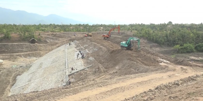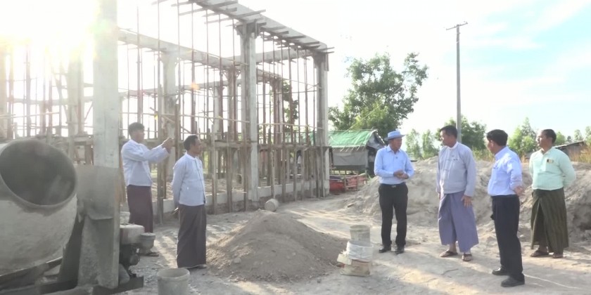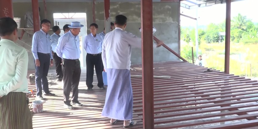 Then, the Deputy Minister oversaw the construction of a temporary dam, the poultry farm and incubation area. On arrival at Shauk Kone Village-tract, he observed the irrigation water supply from a tube well.
