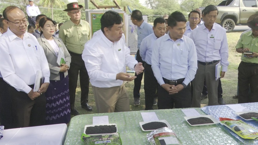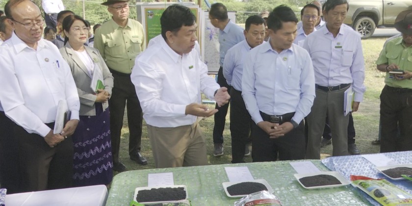 Union Minister for Agriculture, Livestock and Irrigation U Min Naung visited Meikhitla Township in Mandalay Region on 7th March to oversee the summer crop plantations.