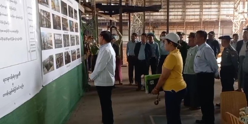 First, the Chief Minister and party inspected Badamyar powder mill in Gandamar Industrial zone in Ywabe ward in Pyay Township, gave necessary instructions. Next, the chief minister inspected the renovation works of Khittaya Public Hall and gave guidance to the responsible officials to supervise the renovation works systematically.