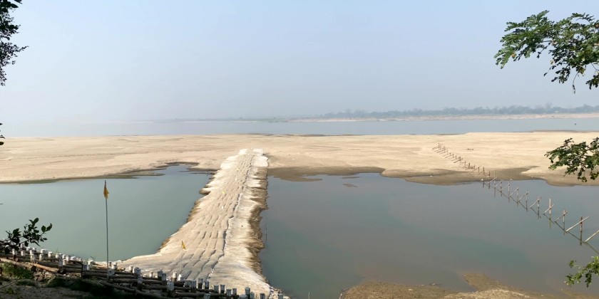 Then, the Chief Minister and officials visited the River Erosion Protection Project, in Shwe Taung Township. An official inspected the situation of the sandbag Geo-Mattress spillway work in the Ayeyarwady River to prevent landslides in Shwe Taung Township.