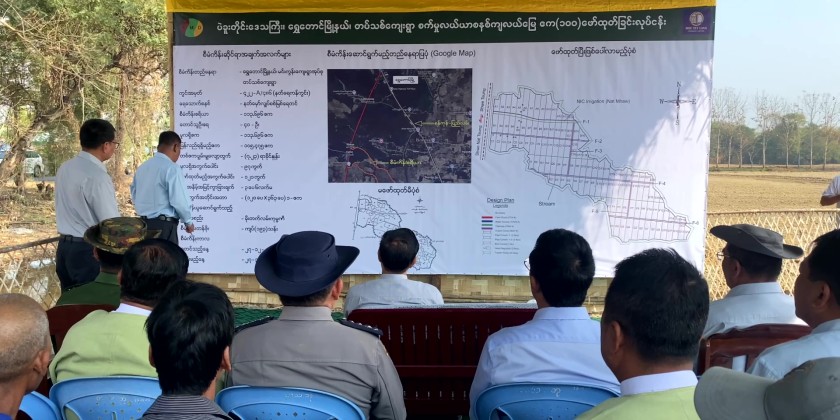 Afterwards, the Chief Minister inspected the development of 100 acres of land in Tat Thit Village, Mingun Village Tract, Shwe Taung Township, heard the clarification of a responsible officials about the completion of the development of mechanized farming and the ongoing situation,  met with local farmers and gave necessary suggestions including to cultivate land without fallowing.