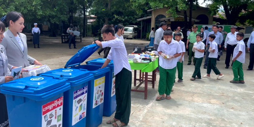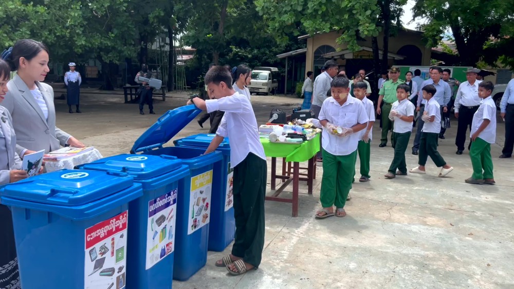 On 17th June, Bago Region Chief Minister U Myo Swe Win accompanied by concerned officials made inspection tour in Taungoo Township for the development of Agriculture, Livestock breeding and MSME sectors. At No.2 Basic Education High School, the Chief Minister attended the Raising Awareness and Demonstration Ceremony on Waste Segregation and provided stationery to the students.