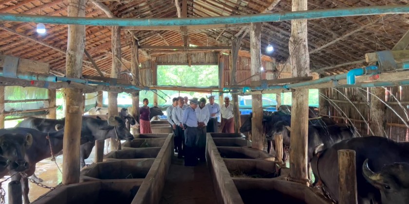 In Kan Yoe Village, the Chief Minister visited a cattle breeding farm, instructed on systematic animal feed production using local by-products and acceleration of dairy product production, emphasizing on biosecurity.