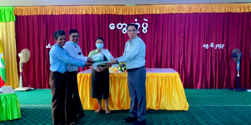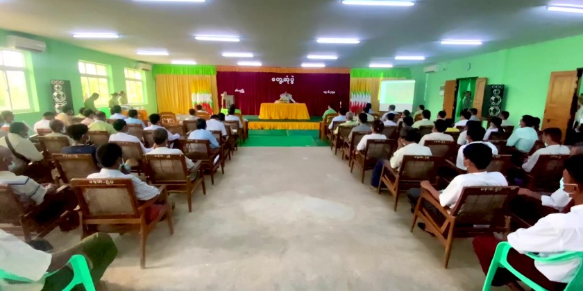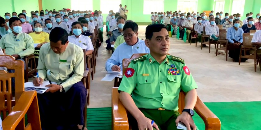 The Chief Minister and party then visited General Administration Office in Min Hla Township and met with district/township level departmental officials and local farmers. During the meeting, the Chief Minister urged officials and local farmers to report the needs for the development of agriculture, livestock and transportation sectors and implementation for the improvement of education, health and also socio-economic life of local farmers.
