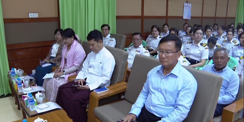 Separately, Union Minister U Chit Swe met with the staff of the Ministry of Commerce to discuss improving performance, identifying past weaknesses, and working with integrity. The Union Ministers then inspected the Dry Port in East Dagon Township, reviewing customs clearance, bonded warehouses, and the storage of EV vehicles and other goods.
