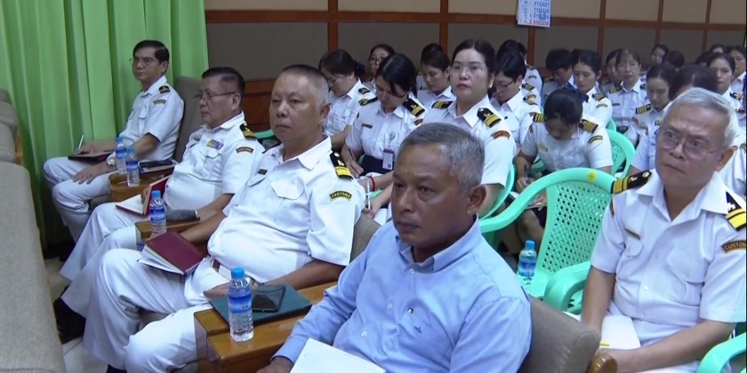 Union Minister U Chit Swe emphasized stricter control on illegal and over-limit imports, especially at border trade points. The Union Ministers also inspected storage systems (SILO) and ongoing operations at the ports. Union Minister Dr Kan Zaw later visited the Customs Department headquarters and met with staff to encourage strict adherence to legal guidelines and civil service ethics.