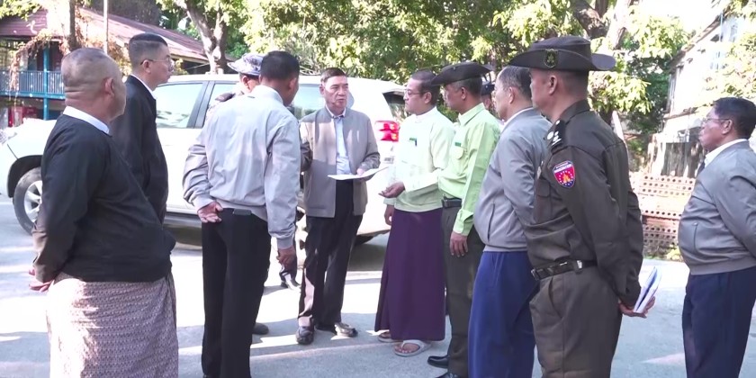 Rakhine State Chief Minister U Htein Lin, together with state government members and departmental officials, inspected development projects in Kyaukphyu Township on December 3. They first visited the household voter list verification process carried out by the Township Election Sub-Commission.