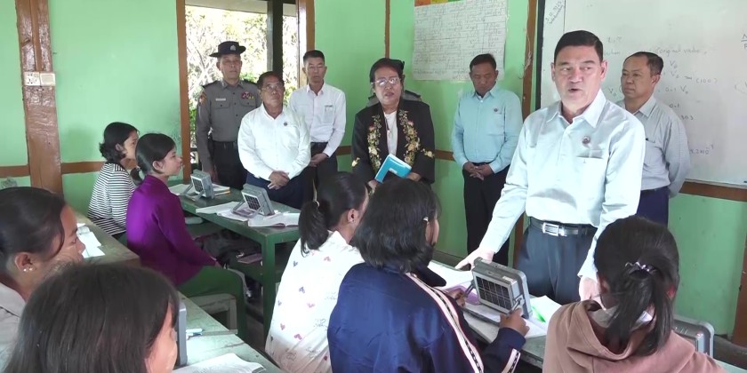 They also visited the Basic Education High School No. (1), meeting Grade-12 students and providing reading lamps for the school library. They also viewed solar water pumps and the school sports ground. Afterward, the Chief Minister met with district and township officials, teachers, and community leaders at Rammawati Hall.