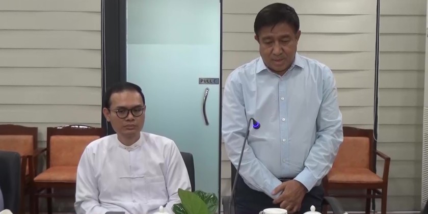 On arrival at Forest Products Joint Venture Corporation in Botahtaung Township, and met with the industrialists and officials.