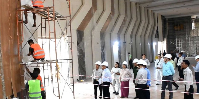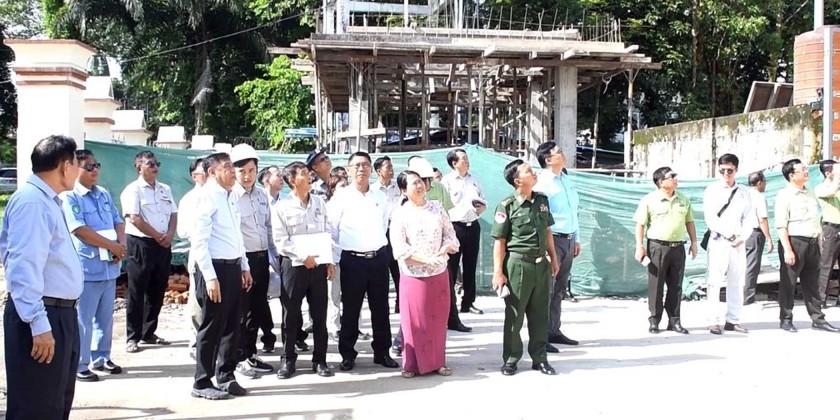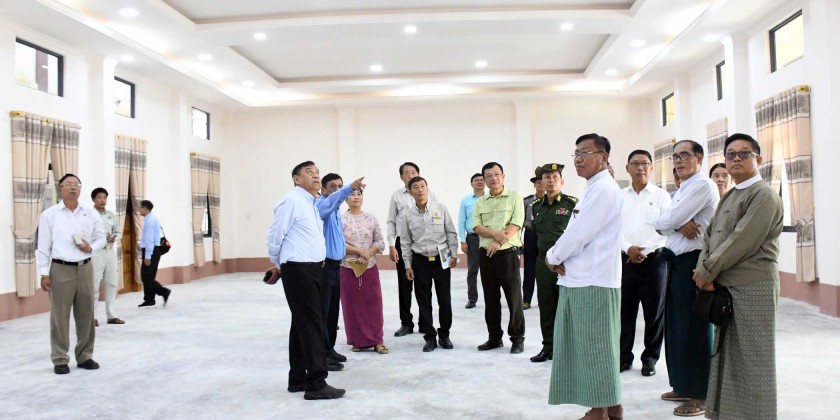 Tanintharyi Region Chief Minister U Myat Ko, along with officials, inspected the construction progress of the new Dawei City Hall on Saturday.