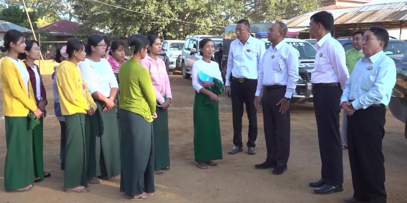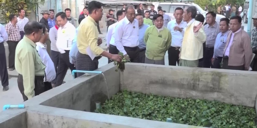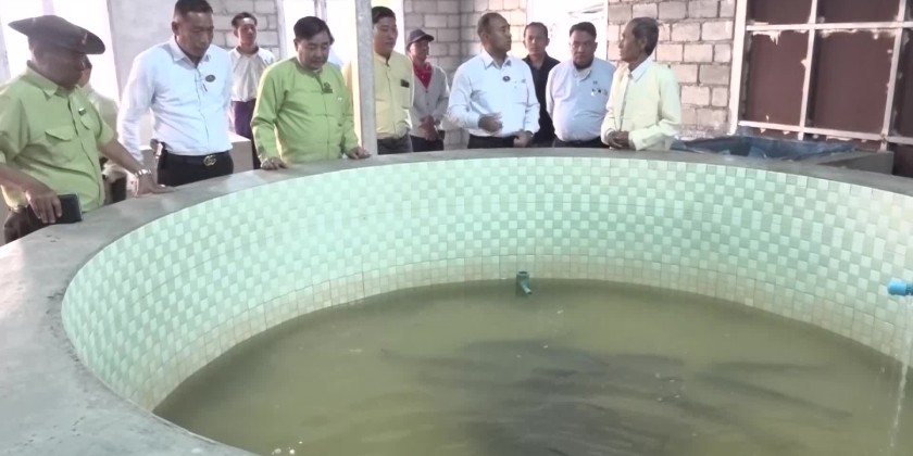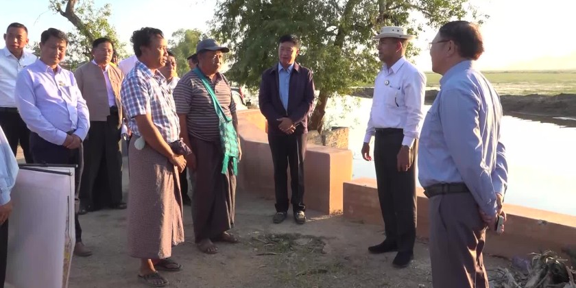 On arrival at Inntein Basic Education High School (Branch), the Chief Minister heard reports presented by the principal and coordinated requirements. Then, the Chief Minister inspected the area on Shwe Da Kyaung road where the silt excluder system will be carried out, and the work undertakings at U Hla Kyaw fish breeding camp,