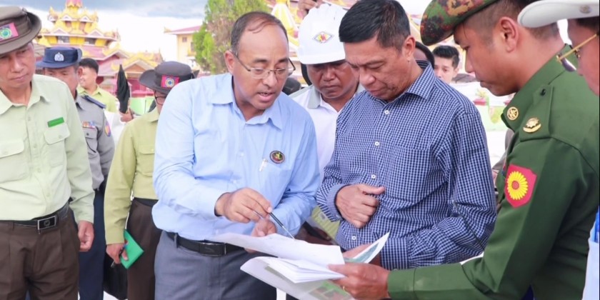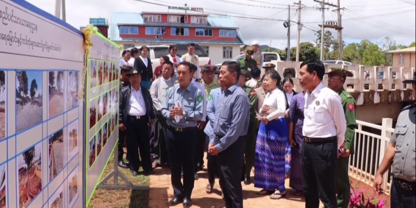 The Union Minister inspected the construction of retaining wall along Kalaw Creek, chosen site for building a suspension bridge and renovation of Kalaw Station as well as the dredging works along Kalaw Creek. During the inspection, the Union Minister instructed for cleanliness and beautifying of Kalaw along with the implementation of proper drainage system.